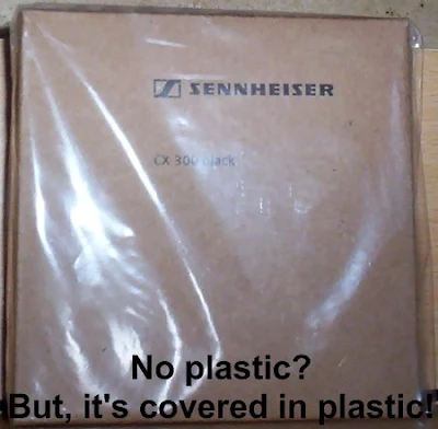 I ordered a set of Sennheiser CX300 Eco Ear Canal Headphones Black last week and they were delivered this morning. As mentioned on amazon, "Packaging made from 78 per cent recycled paper, 100 per cent recyclable, NO plastics, NO glues", note the parts in bold.